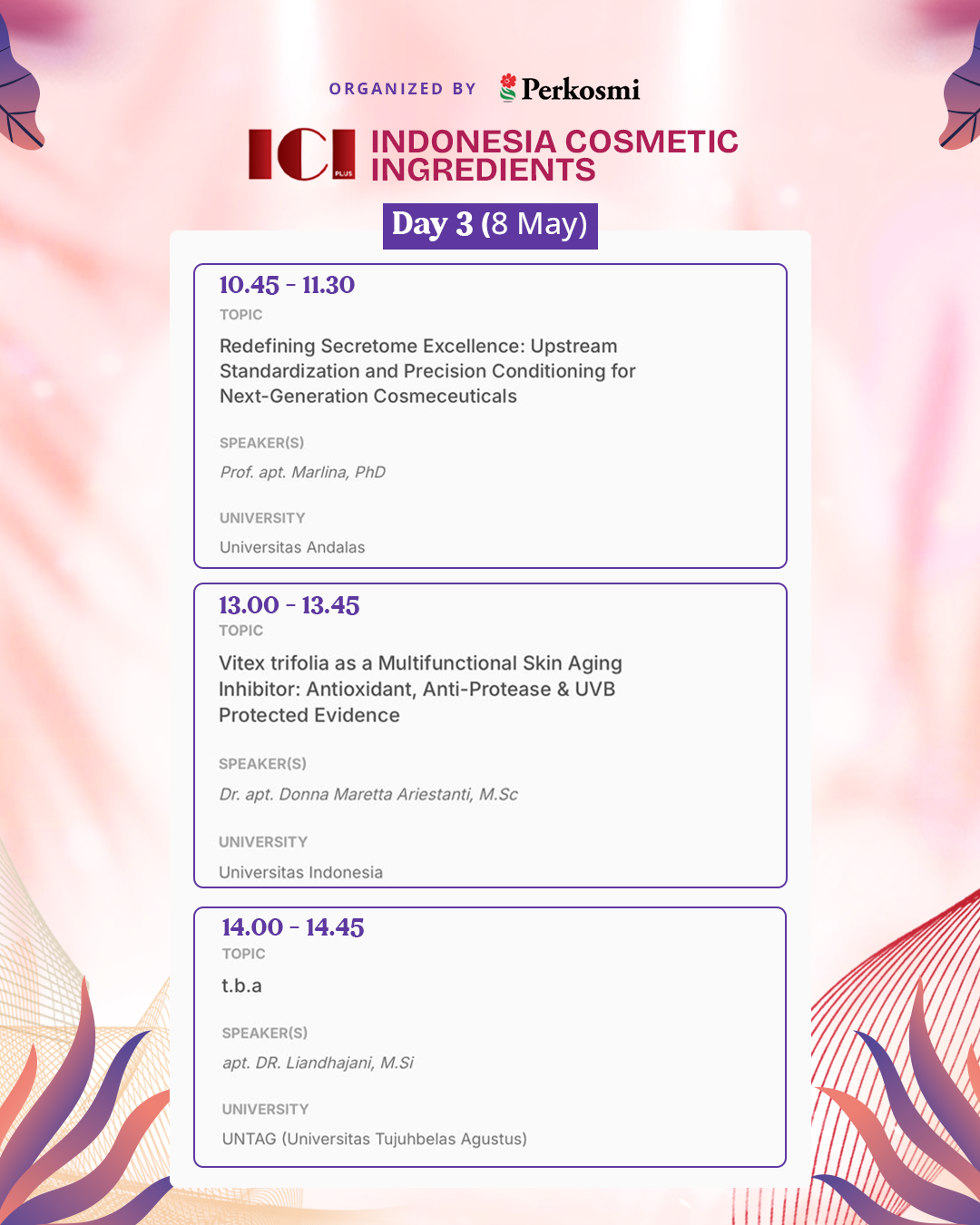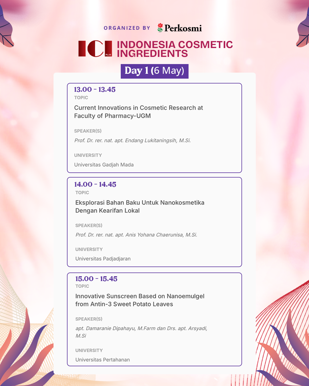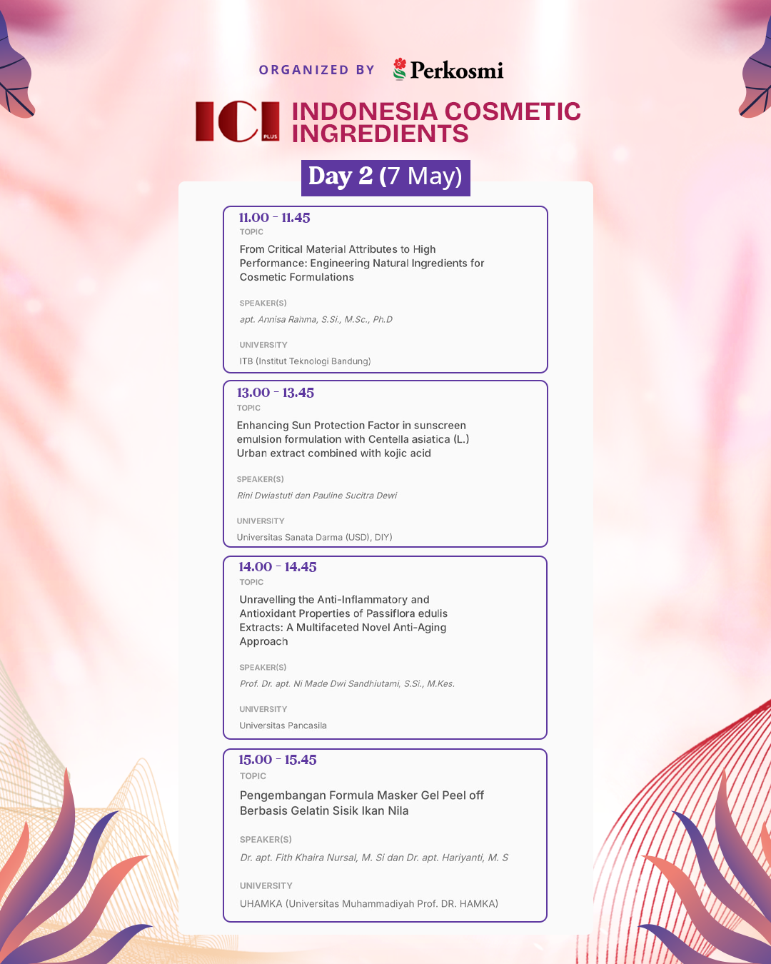 CI 2026 will also present a series of University Seminars, featuring academic research and scientific innovations from leading Indonesian universities in the field of cosmetic science.